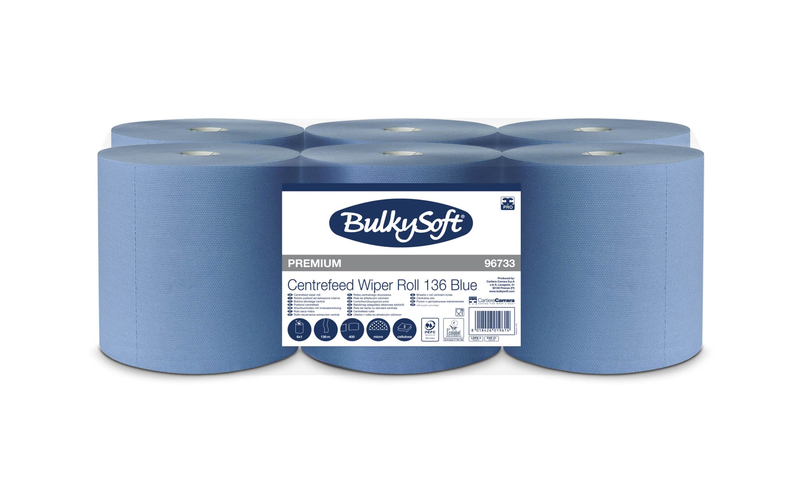 BULKYSOFT PREMIUM CENTREFEED WIPER ROLL 136 BLUE